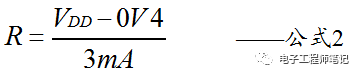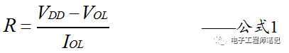 VOL定义为在漏极开路或集电极开路时,有3mA下拉电流时的低电平输出电压。IOL就是该端口的灌电流,即IOL=3mA。由上式可得,当VDD不变, VOL取最大值时,上拉电阻有最小值。