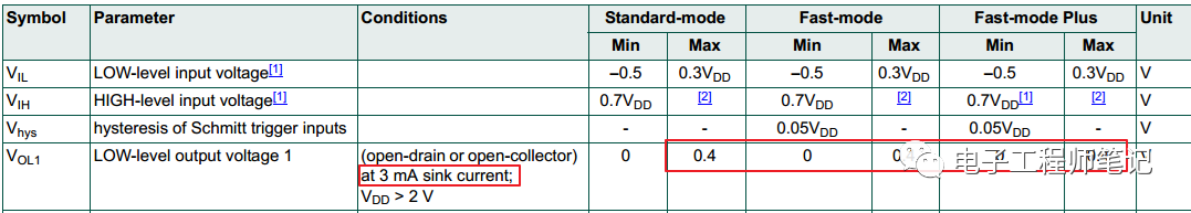 根据I2C协议,端口输出低电平的最高允许电压是0.4V。