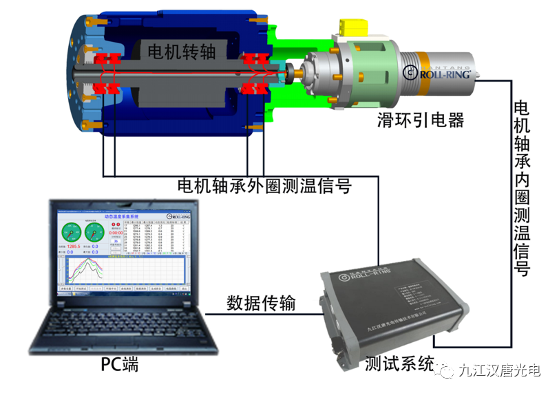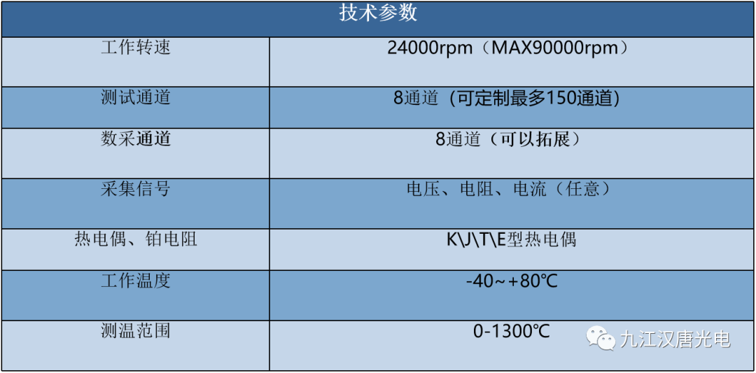高速电机向高精度、高功率密度、高转速和一体化等方向发展,由此带来了电机内部发热量急剧增加、有效散热空间严重不足等问题,因此散热问题成为电机系统进一步向高功率密度方向发展的瓶颈。电机内部温升过高不仅会缩短电机内部绝缘材料的寿命,而且会降低电机的运行效率,使得发热量增加,造成电机温度进一步上升,形成恶性循环,严重影响电机寿命和电机运行的安全性,因此,采用高效的散热系统抑制电机温升是电机向高效率、高稳定性和高可靠性方向发展的关键,高速电机转子温度测试数据给高速电机性能优化和冷却设计提供数据支撑。