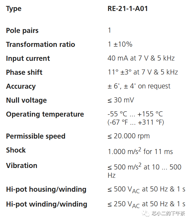 如下是德国莱特纳LTN旋转变压器RE-21的参数,旋转变压器的测量精度用角秒衡量,一度=60角分,1角分=60角秒(角秒符号 ‘)