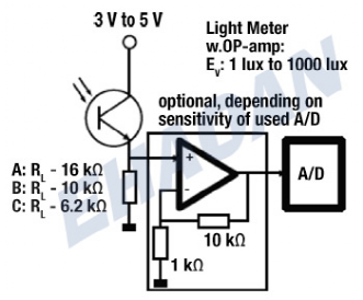 5、功耗:对于要承受高勒克斯(>1万勒克斯)的光传感器来说,最好采用非线性模拟输出或数字输出。