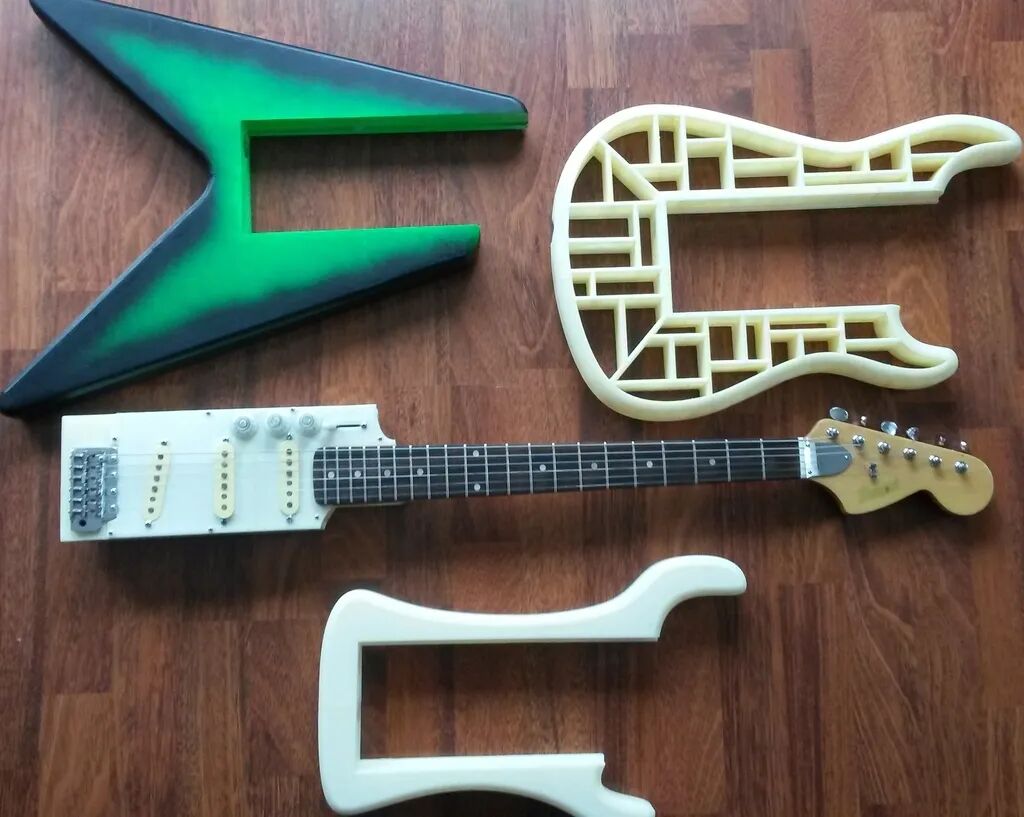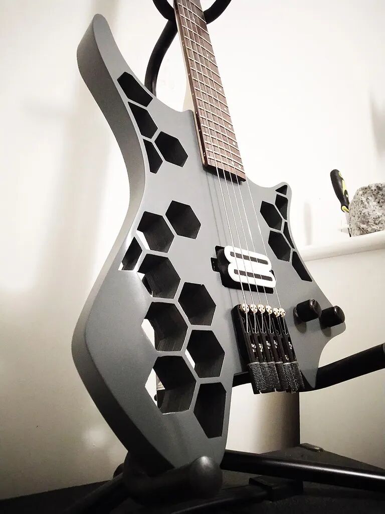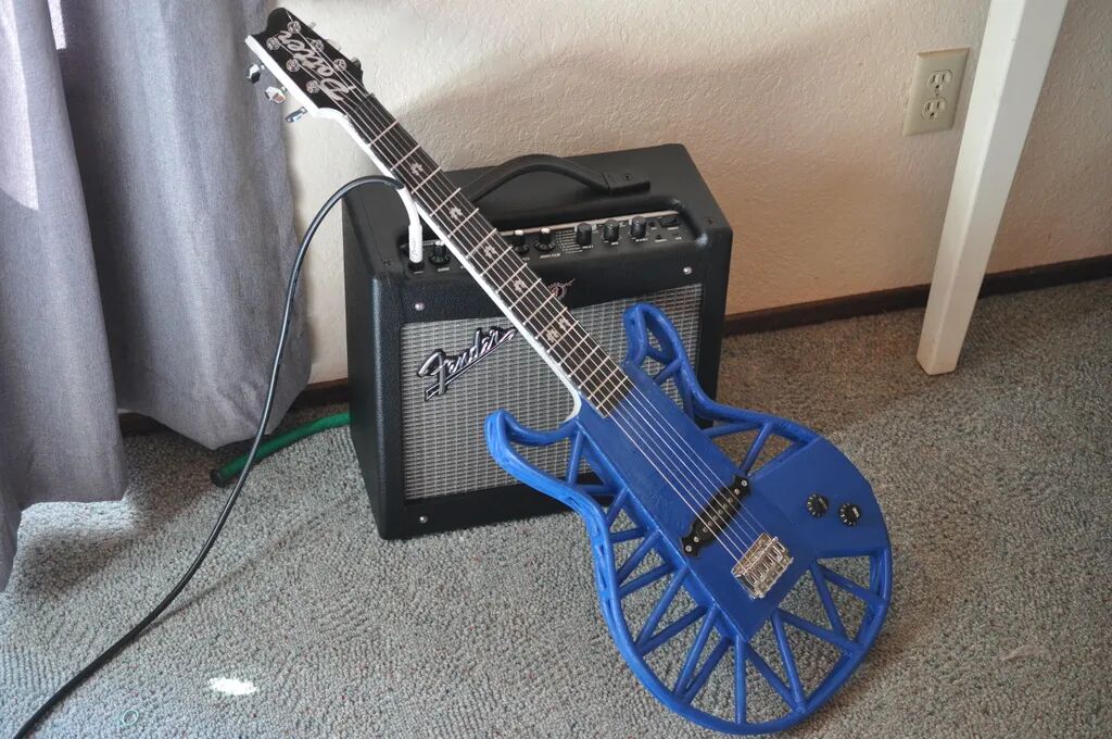 这把电吉他的琴身和琴颈是在 Flash Forge 上进行 3D 打印的。 琴颈由两个 碳纤维管 组装而成,这些管子镶嵌在环氧树脂中,代替了传统的桁架杆。 通过用环氧树脂渗透印刷品的填充区域,进一步加强了琴颈。 颈部贯穿的主体设计允许制造商在不改变核心配置的情况下打印他们选择的主体。