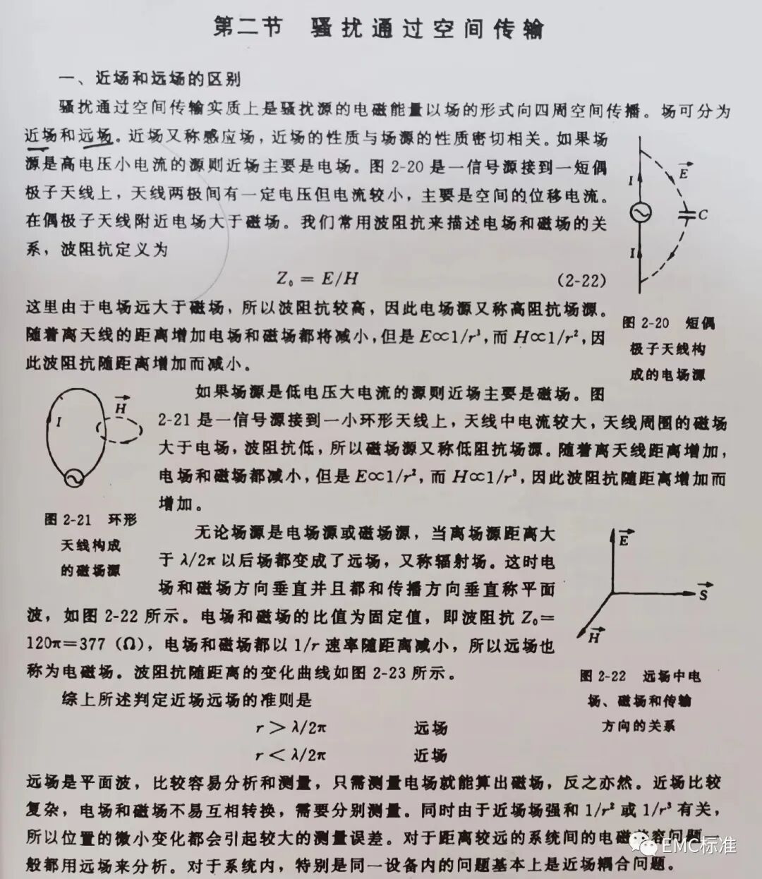 则,对于上面所说的偶极子天线,其E大于H,则Z0较大,所以电场源又称高阻抗场源;对于上面所说的环形天线,其H大于E,则Z0较小,所以磁场源又称低阻抗场源。