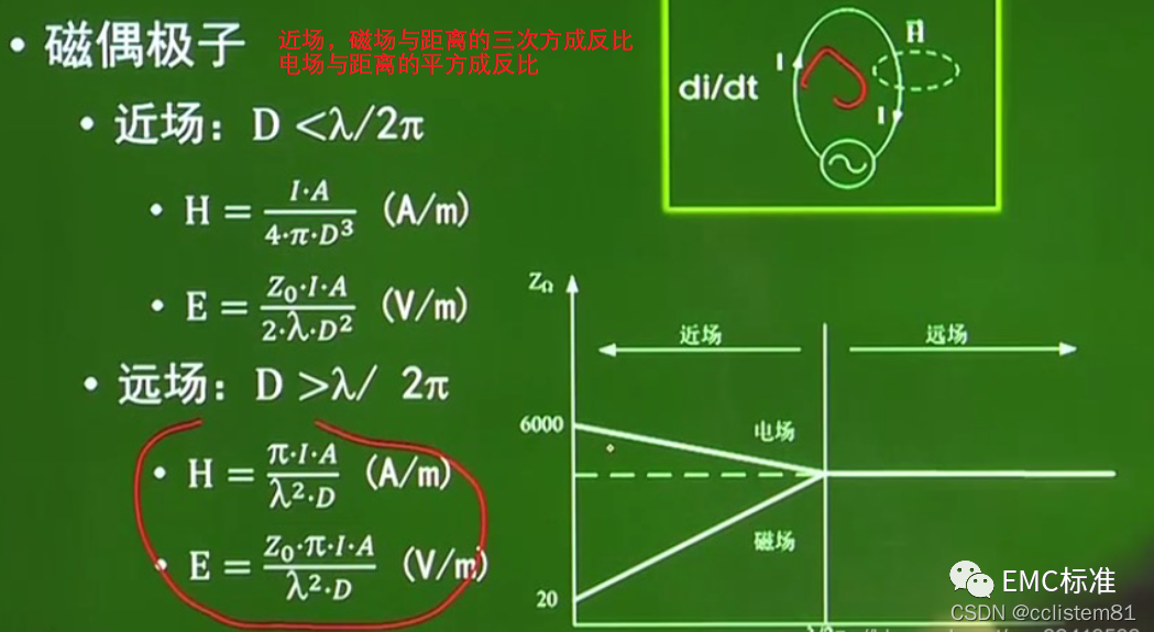 对于骚扰信号频率的升高,天线所在位置对越高频的骚扰来说就越接近远场。