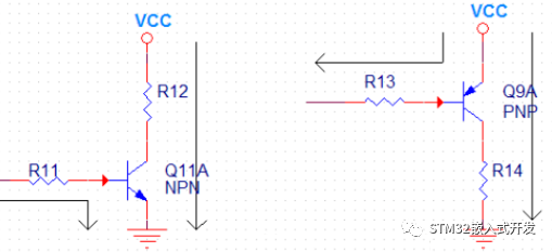 对NPN三极管来说,最优的设计是,负载R12接在集电极和VCC之间。不够周到的设计是,负载R12接在射极和GND之间。