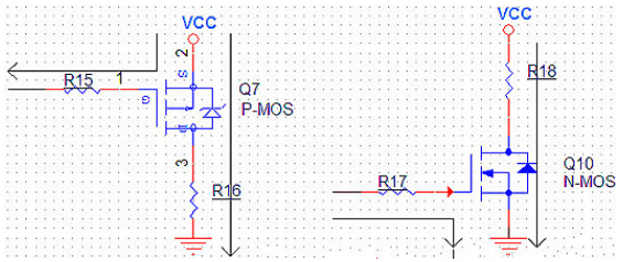 对PMOS来说,最优的设计是,负载R16接在漏极和GND之间。不够周到的设计是,负载R16接在源极和VCC之间。