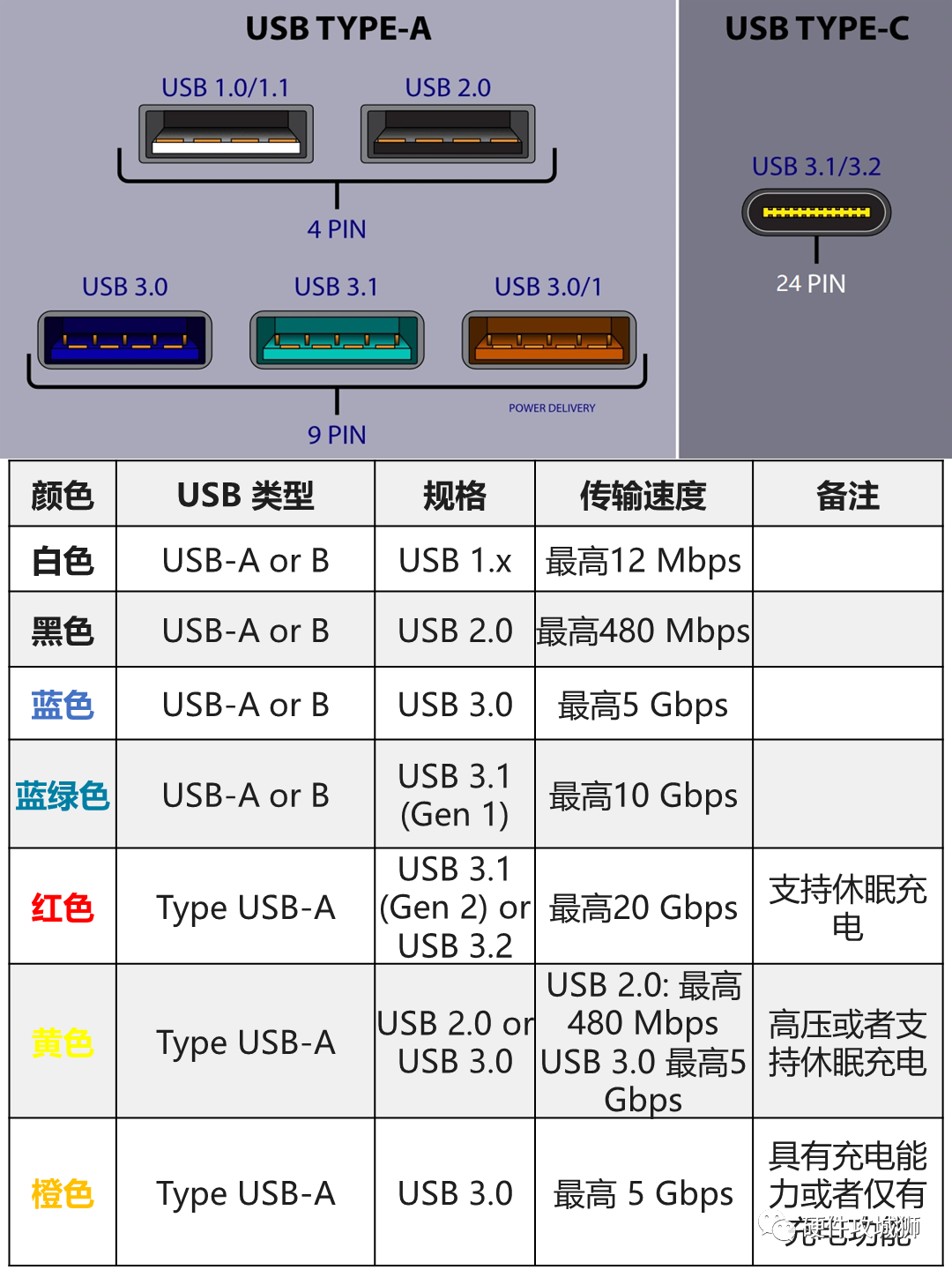 实际上,USB端口颜色是识别USB类型的方法之一,但它不是识别USB类型的标准和推荐方法。一般的厂商都会遵循类似的颜色模式。