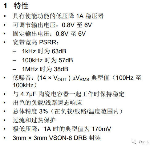 打开 TPS7A80 数据表 ,可以看到数据表中的特性说明也是主要围绕上面几点给出的:
