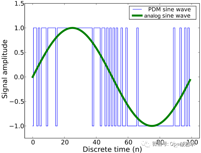 PDM就是经过了以上的∑-Δ调制而得到的数字信号,如果把这一连串数字信号放在同一标尺上和原始信号相比,会发现数字”0″和”1″随着信号电频的增减成都而密度产生相应变化,所以称为是脉冲密度调制**(Pulse Density Modulation)。