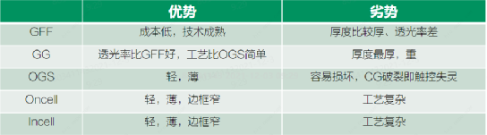 2、轻薄程度,一般来说In-Cell最轻最薄,OGS则次之,On-Cell比前两者稍差。