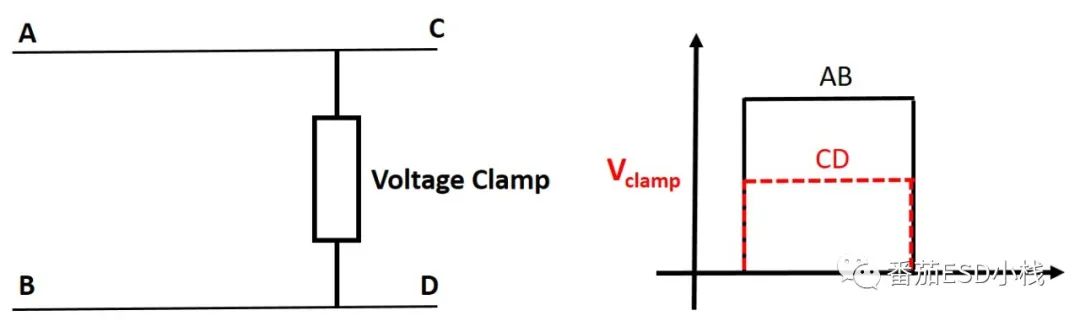 如图一所示,在某些应用场景中需要将两点的电压限制在一个固定电压。该固定电压被称为钳位电压Vclamp