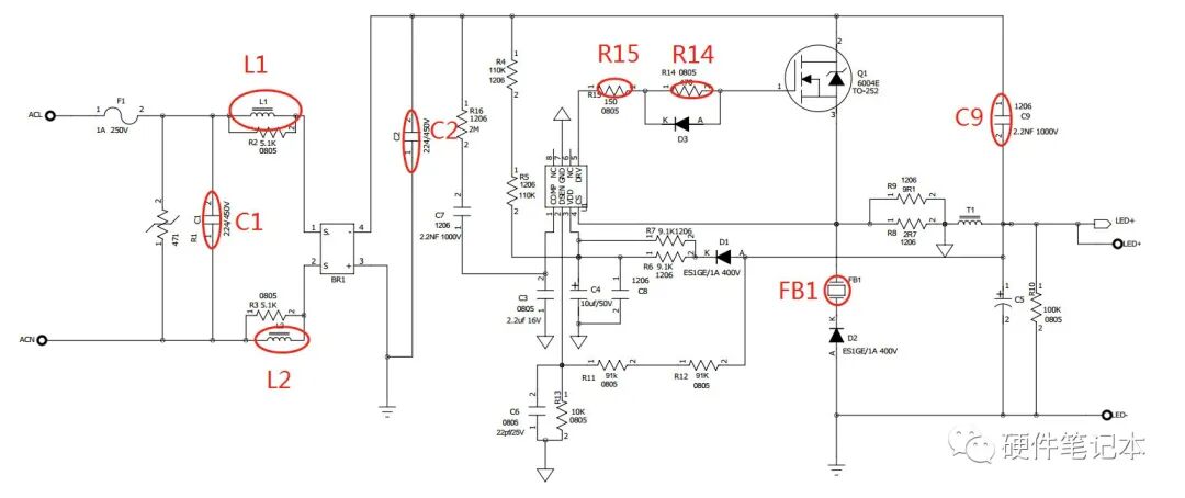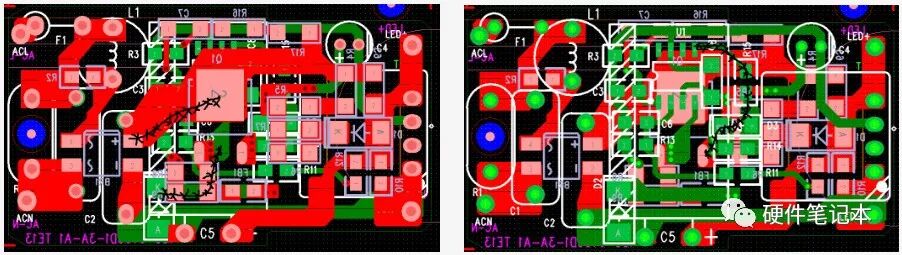 5、整改方案:重点关注高频开关点(如下红色圈处),调整Layout布线设计: