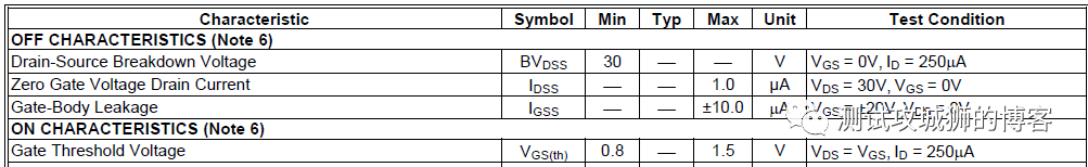 Rds(ON)的测试非常简单,就是使用欧姆定律关系。在datasheet中也定义了Rds(ON)的测试要求: