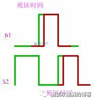 那么S1为低,S2为高;S1为高,S2为低。同时,我们也知道,MOSFET的开通和关断都是有延时的,再加上刚刚说的MOSFET开通或关断出现震荡,那么,有可能出现上下互通的情况。一般我们避免这种情况发生,会加一个死区。可以让开通延时,下降时间不变。这就是我们互补输出方式。