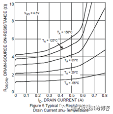 ② Rds(ON)与温度的关系,温度越高,Rds(ON)越大。温度特性会严重影响器件的工作特性,导致产品运行不稳定。