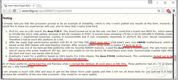 2000 年,英特尔为抗衡 AMD 发布的 1GHz CPU,迅速的推出 Pentium III 1.13GHz。却未料,大部分用户在安装 Pentium III 1.13GHz 之后,发现处理器在使用中发生了执行部分软件时死机、不稳定等情况。
