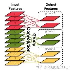 12.3 什么是group 卷积?如图22所示,将输入的特征多个channel分成几个group单独做卷积,最后再进行con c操作。