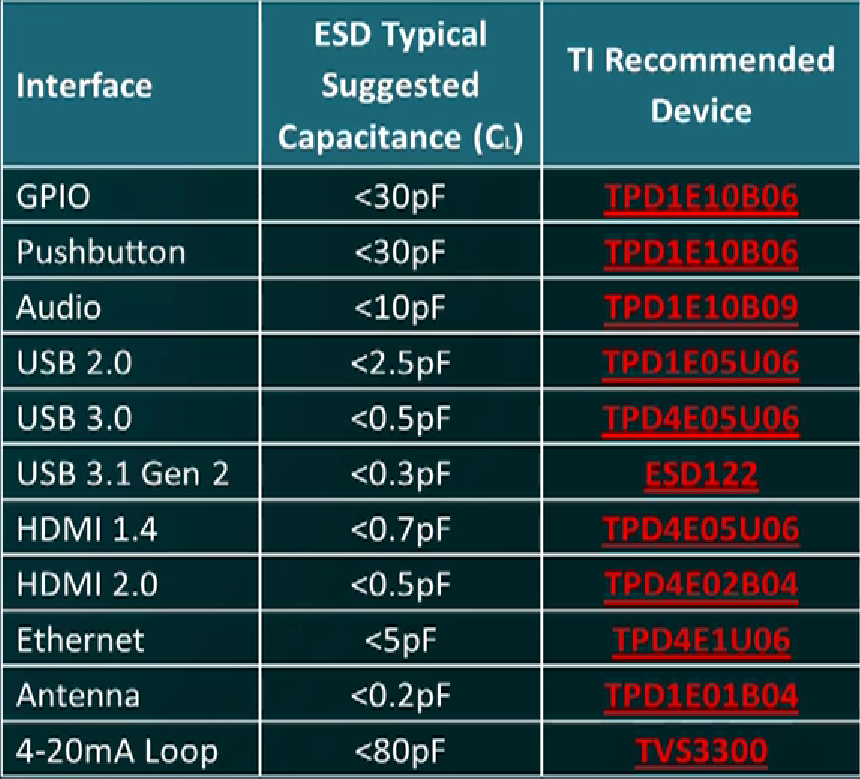 TI写了份《系统级ESD保护指南》,里面有常见接口的推荐TVS管,通过反推就能大致知道不同接口的钳位电压是多少了;