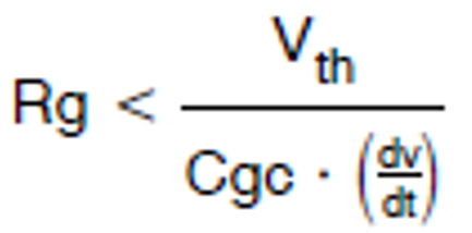 MOSFET 存在一种称为二次导通的现象。这是由于漏电压的 dv/dt 速率非常快,其范围可以在 1000–10000 V/us 之间。尽管 IGBT 的开关速度通常不如 MOSFET 快,但由于所使用的是高电压,因此它们仍然可以遭遇非常高的 dv/dt 电平。如果栅极电阻过高,就会导致二次导通。