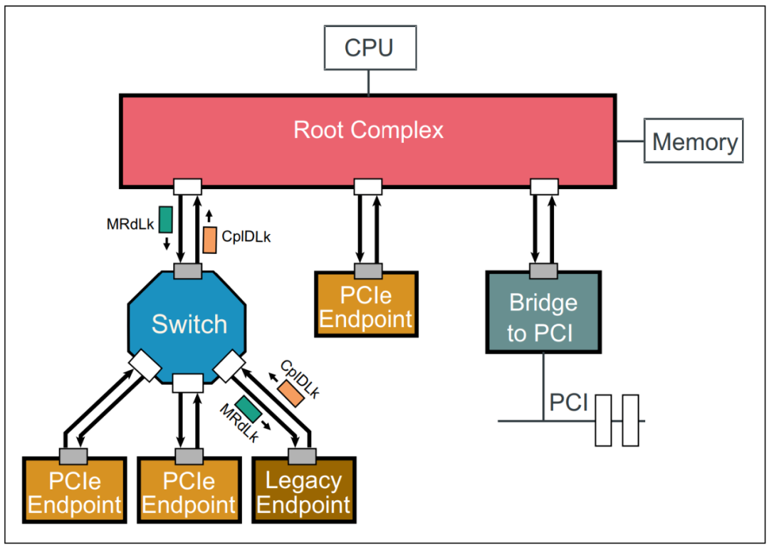 锁定的请求使用目标内存地址通过拓扑路由,并最终到达旧式端点(Legacy Endpoint)。当数据包沿途经过每个路由设备(称为服务点)时,该数据包的出口端口将被锁定,这意味着在未解锁路径之前,不允许该方向路径的其他数据包通过。