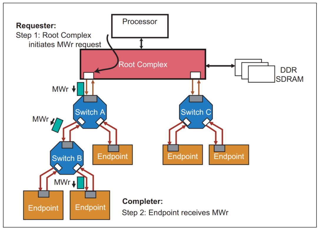 1.步骤1a:请求者发送内存读取请求,并将副本保存在其重传缓冲区(replay buffer)中。交换机收到MRd TLP,并检查LCRC和序列号。