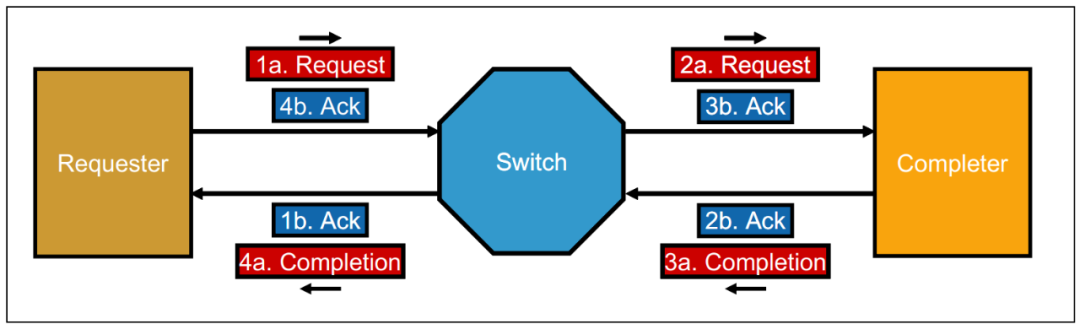 步骤2b:未发现错误,因此完成器(Completer)将Ack DLLP返回到交换机。交换机端口从其重放缓冲区删除其MRd TLP副本。