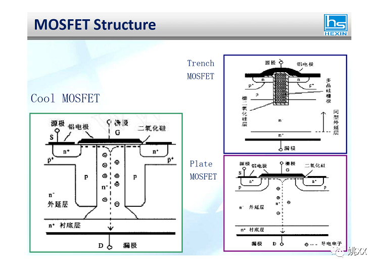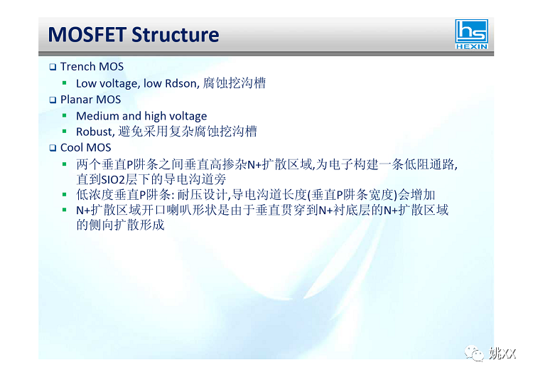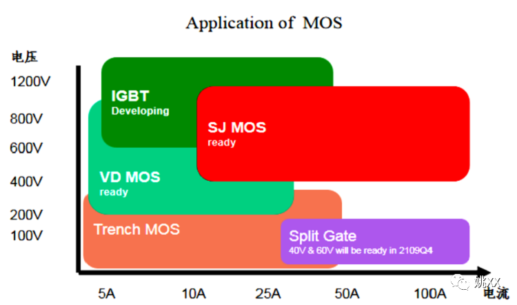 SJ超结工艺 结合平面工艺和沟槽工艺的特点主要为高压功率Mos采用,目前主要新能源市场广泛应用,我们熟悉的有光伏逆变器,充电桩,电动汽车,储能等