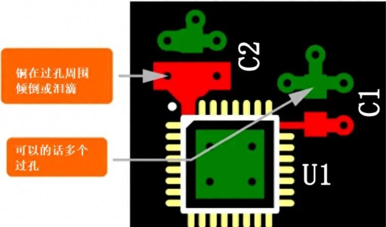 - 在设计允许的情况下,尽可能使用焊盘内通孔