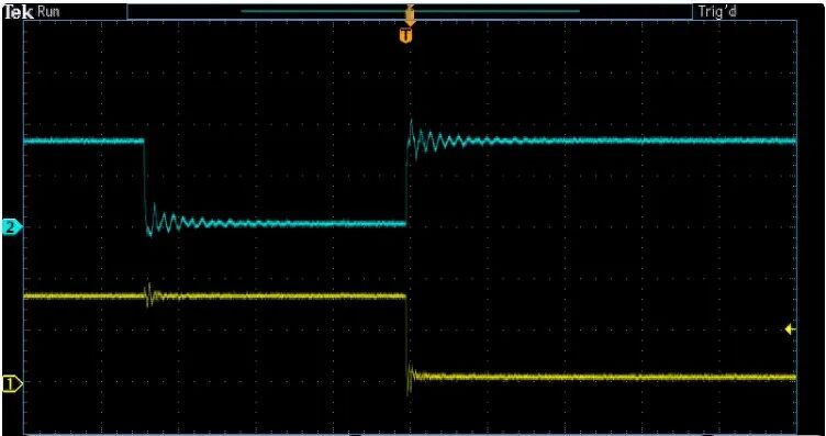 这里,开关期间在3.3V线路上产生约1V的噪声,该噪声在最终落入背景线路噪声之间继续在信号线路中明显谐振。