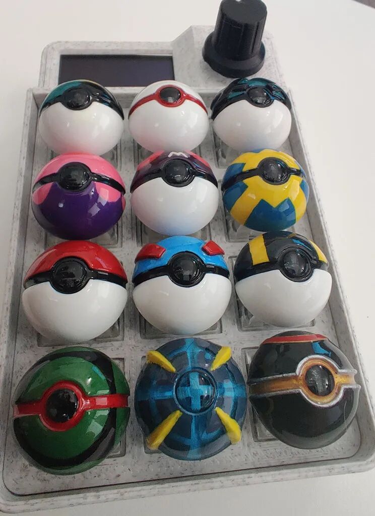 [ID:4960849] 我喜欢 Bribot (ID:4733808) 的键帽样式,但键帽太大,无法并排放在我的 macropad 上,所以我从头开始设计自己的键帽,然后也 制作了定制的 Great Ball、Master Ball、Net Ball、Luxury Ball 和 Beast Ball 形状。 目前的 Net Ball 有点过于骄傲,无法坐在另一个键下(至少在我的 macropad 上)。 我用透明树脂印刷,中间的按钮是透明的,这样光线就可以透过。