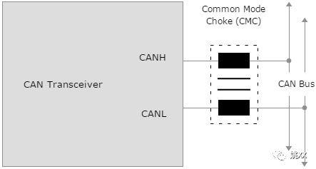 CAN收发器的特性包括非常低的电磁辐射和很强的抗击共模噪声的能力。另外,CAN收发器可以提供高达 8KV*的ESD保护,在电路设计中可以在收发器附近增加共模电感以进一步降低电磁辐射(图5)。