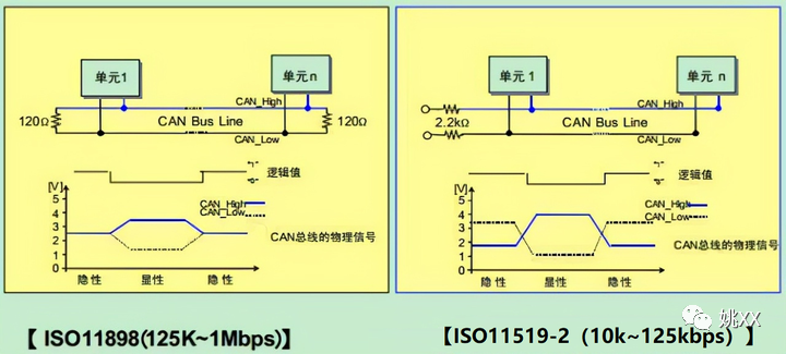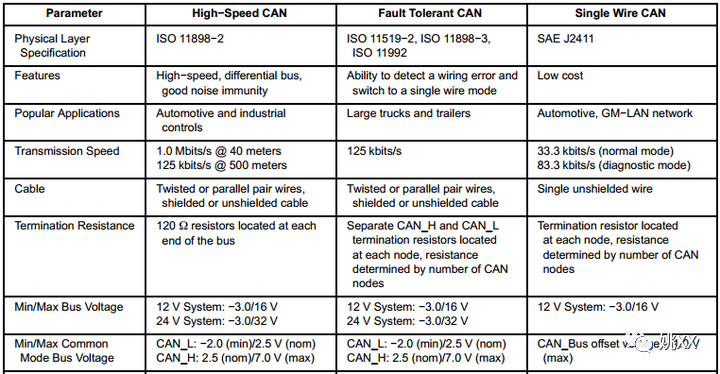 CAN主要由两个协议定义:ISO11898和ISO11519-2,具体区别、对比如下图: