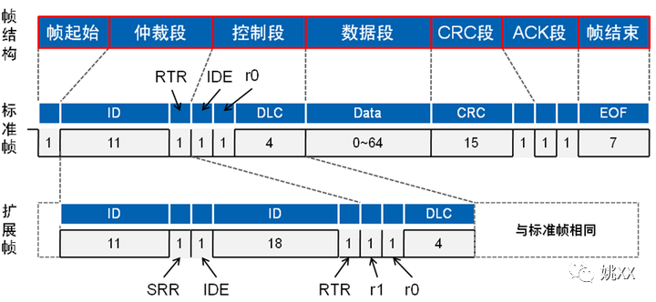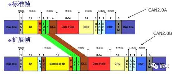 - 1991年,Bosch发布CAN 2.0标准,分 CAN 2.0A (11位标识符)和 CAN 2.0B (29位标识符);