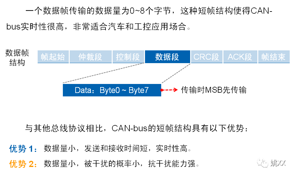 - 在一个控制系统中,设备的ID 和 数据的格式都是由系统厂商规定的。例如笔者曾经开发过一个汽车上的方向盘角度传感器。就是由汽车厂提供的帧数据格式和ID 数据表,来设计的。与博世的同类产品不相同。