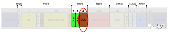 远程帧的 *DLC* 块表示请求发送单元发送的数据长度(Byte)。当总线上具有相同标识符的数据帧和远程帧同时发送时,由于数据帧的 *RTR* 位是显性的,数据帧将在仲裁中赢得总线控制权。