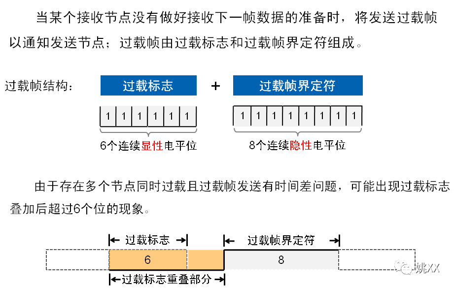 过载帧是用于接收单元通知发送单元它尚未完成接收准备的帧。在两种情况下,节点会发送过载帧: