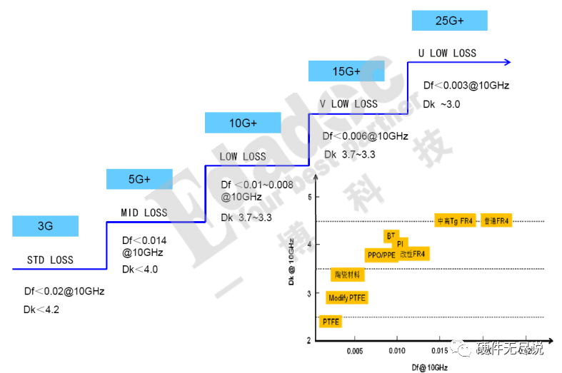 普通损耗板材、中损耗板材middle loss、低损耗板材low LOSS、超低损耗板材等;