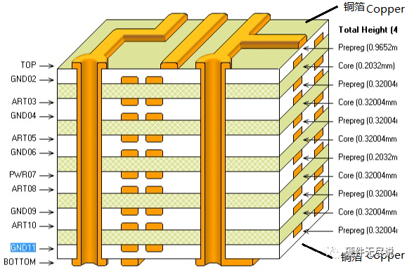 1.2、Prepreg(pp):半固化板,由玻纤布(Glass fabric)、树脂(Resin)、硬化剂(Dicyandiamide)、速化剂(Accelerator)、溶剂(Solvent)、填充剂(Additive)组成。主要作用:绝缘,粘合