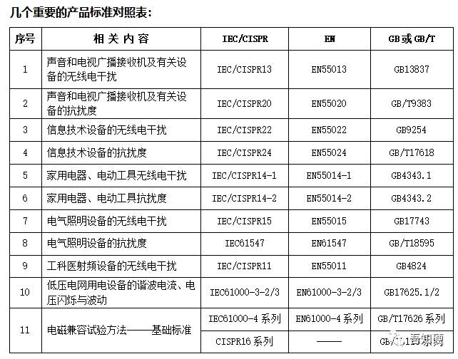 产品类标准针对某类产品规定了特殊的电磁兼容要求(发射或抗扰度限值)以及详细的测量程序。产品类标准不像基础标准那样规定一般的测试方法,它比通用标准包含更多的特殊性和详细规范,其测量方法和限值需与通用标准协调。