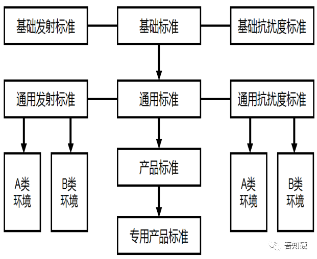 通用标准规定了一系列的标准化试验方法与限值要求,并给出这些方法和要求所适用的具体环境。即通用标准是对给定环境中所有产品的最低要求。如果某种产品没有产品类标准,则可以使用通用标准,通用标准将适用环境分为A类与B类。