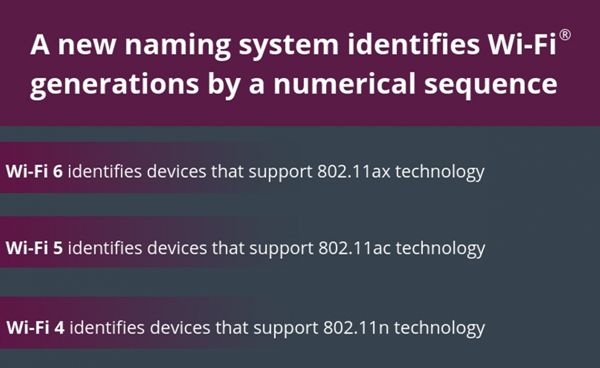 2018年10月,Wi-Fi联盟(Wi-Fi Alliance)借着推广802.11ax新标准的机会,正式对WiFi规格世代进行重新命名。主流标准802.11n改名WiFi 4,主流标准802.11ac改名WiFi 5,新标准802.11ax改名WiFi 6。不要问前三代标准去哪儿,既然都是过去式,相逢何必曾相识。