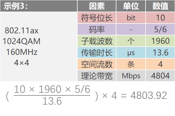 事实上,WiFi理论带宽的计算公式远比你想象中简单,所有关键因素均已在前篇科普,并有明确的取值范围,只需根据WiFi技术规格选取相应的数值,丢进公式掐指一算即可。