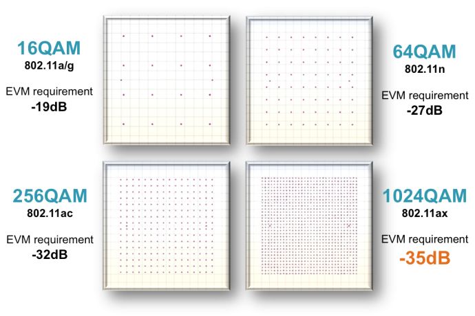 从WiFi协议迭代历程不难看出,对单流带宽影响最大的,一个是调制,一个是频宽。所谓调制,就是将电信号转换为无线电波的过程,反之则称为解调,其核心技术是调制方式,调制方式越高阶,转换过程中数据密度就越高。