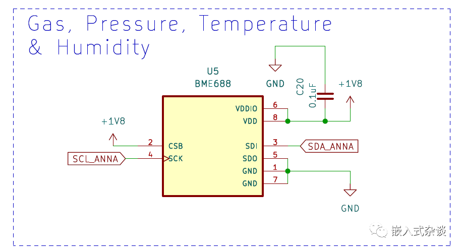 4.Bosch BME688 环境传感器(气体,湿度,压力,温度)。