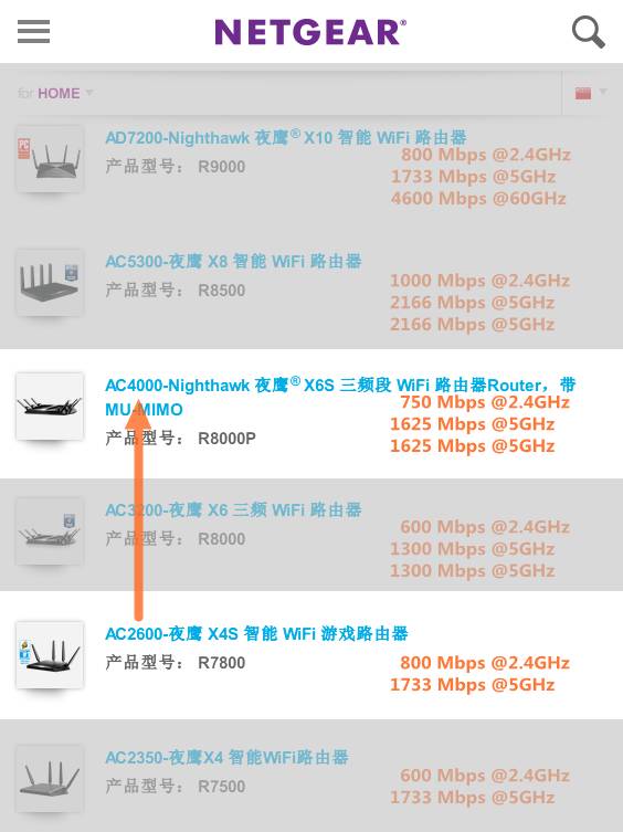 再回来看看这张夜鹰族谱,R8000P的带宽累加值=4000,R7800的带宽累加值=2600,乍看前者规格更高,很容易以为R8000P的带宽更大(速度更快)。但仔细看各频段的带宽,万万没想到,无论2.4G还是5G频段,都是R7800的带宽更胜一筹。简而言之,就单台终端而言,R7800能提供的理论带宽更大,而R8000P只是多出一个频段,能带动更多的终端而已。