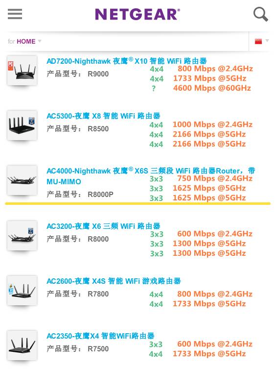 对路由器的标称带宽(累加值)解毒之后,数字的游戏依然在继续,那么单频段的理论带宽是怎么来的呢?主要由四个因素决定:协议、调制方式、频宽和MIMO流数。解释起来有点复杂,索性看表更直观。以网件R8000P为例……