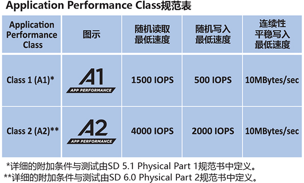 • 略显多余的是,A1与A2同时也代表V10(持续稳定最低写入速度10MB/s),这导致速度等级重复标识的尴尬。