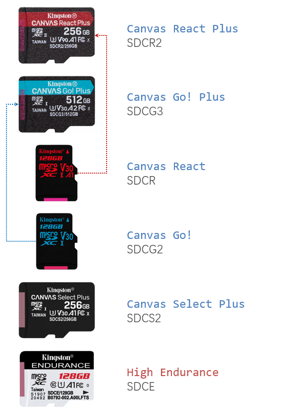 迭代前TF产品线为3+1阵容,三款常规TF卡盘踞中端,旧红卡(SDCR)、旧蓝卡(SDCG2)与新黑卡(SDCS2)内耗严重,现阶段值选新黑卡!至于红卡与蓝卡,等迭代再议。