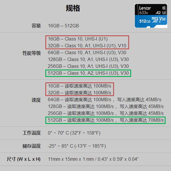 敲黑板:同款TF卡,容量不同,性能不尽相同,大容量才是满血!