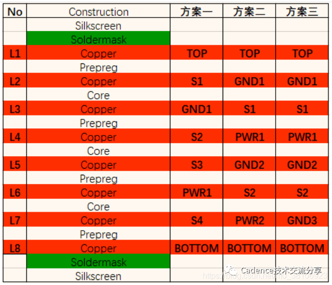 8层板优选叠层方案主要有三类: